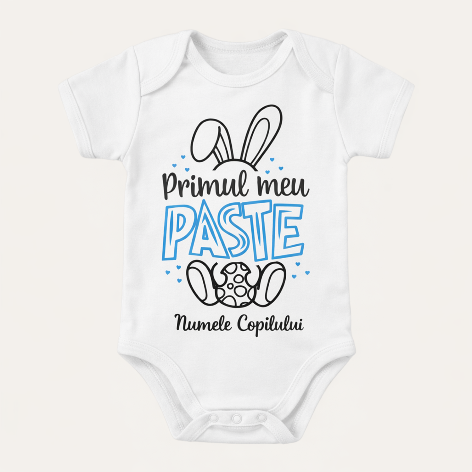Sărbătorește primul Paște al micuțului tău cu acest adorabil body „Primul meu Paște”! Perfect pentru momente speciale, fotografii memorabile sau cadouri pentru proaspeți părinți, body-ul combină confortul cu un design jucăuș și tematic.